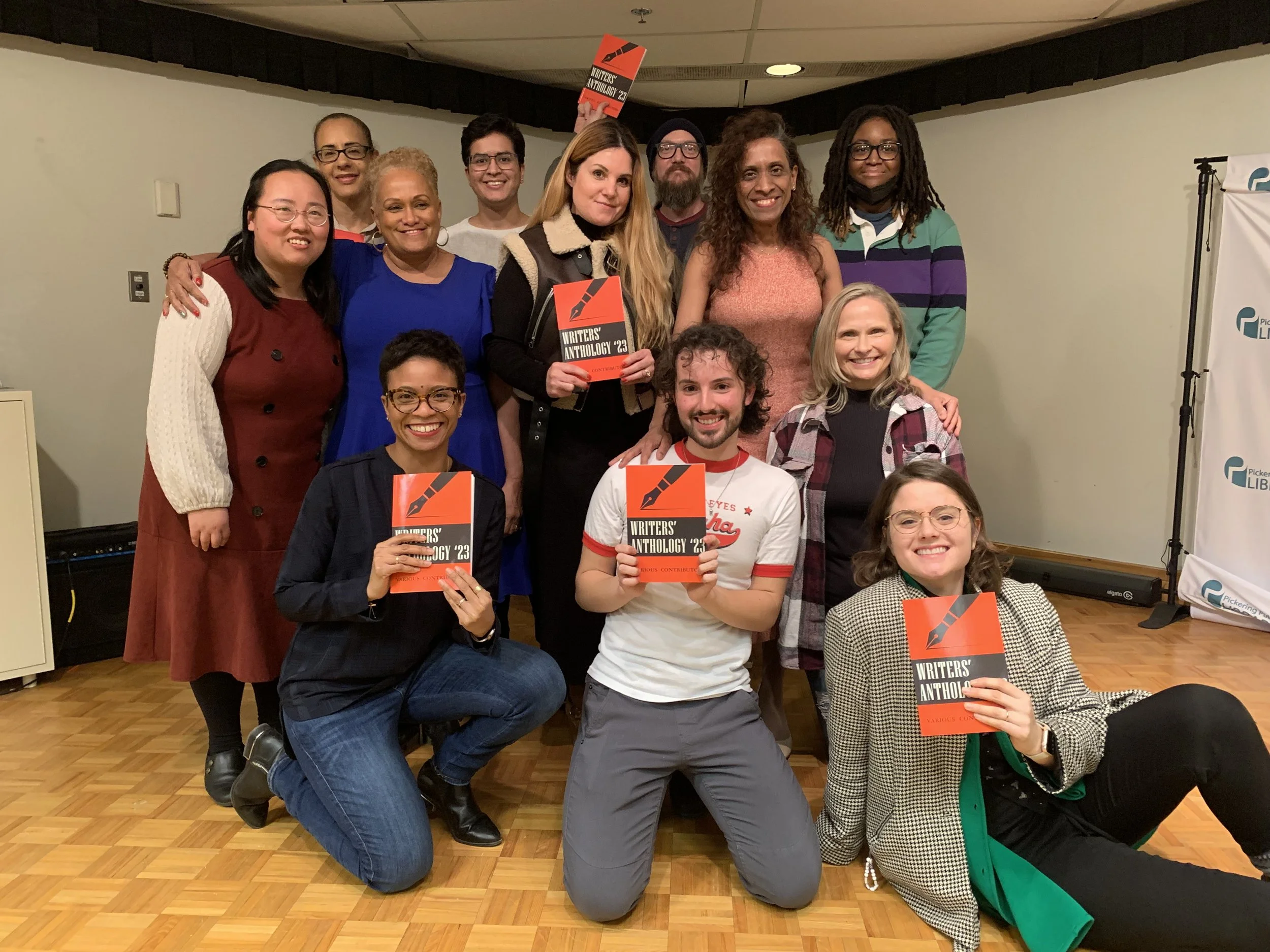 Creative writing students at the Pickering Public Library with their collaborative anthology.