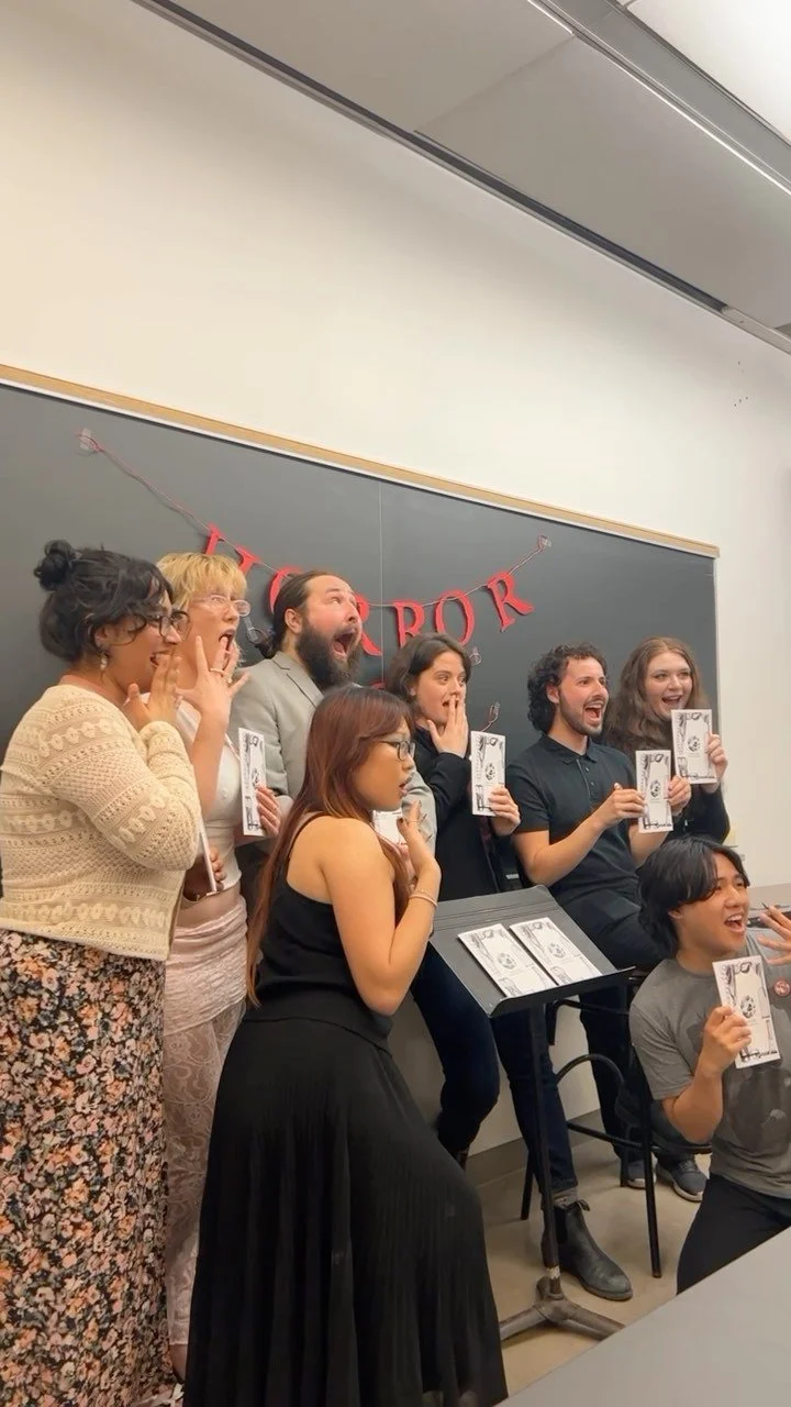 Kalen Wells reading 'Onion Boy' and astounding the audience.